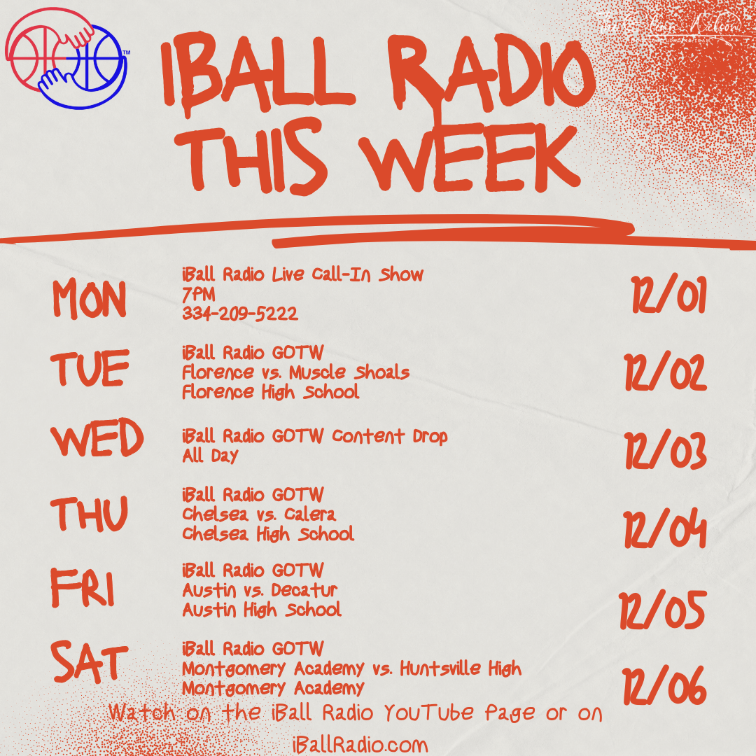 December is here, and iBall Radio is kicking off the month with one of the busiest and most action‑packed weeks of the entire season. Four GOTWs, a full content drop, and the signature Live Call‑In Show set the tone for a huge week of Alabama high school basketball coverage. Here’s everything happening across the state this week: